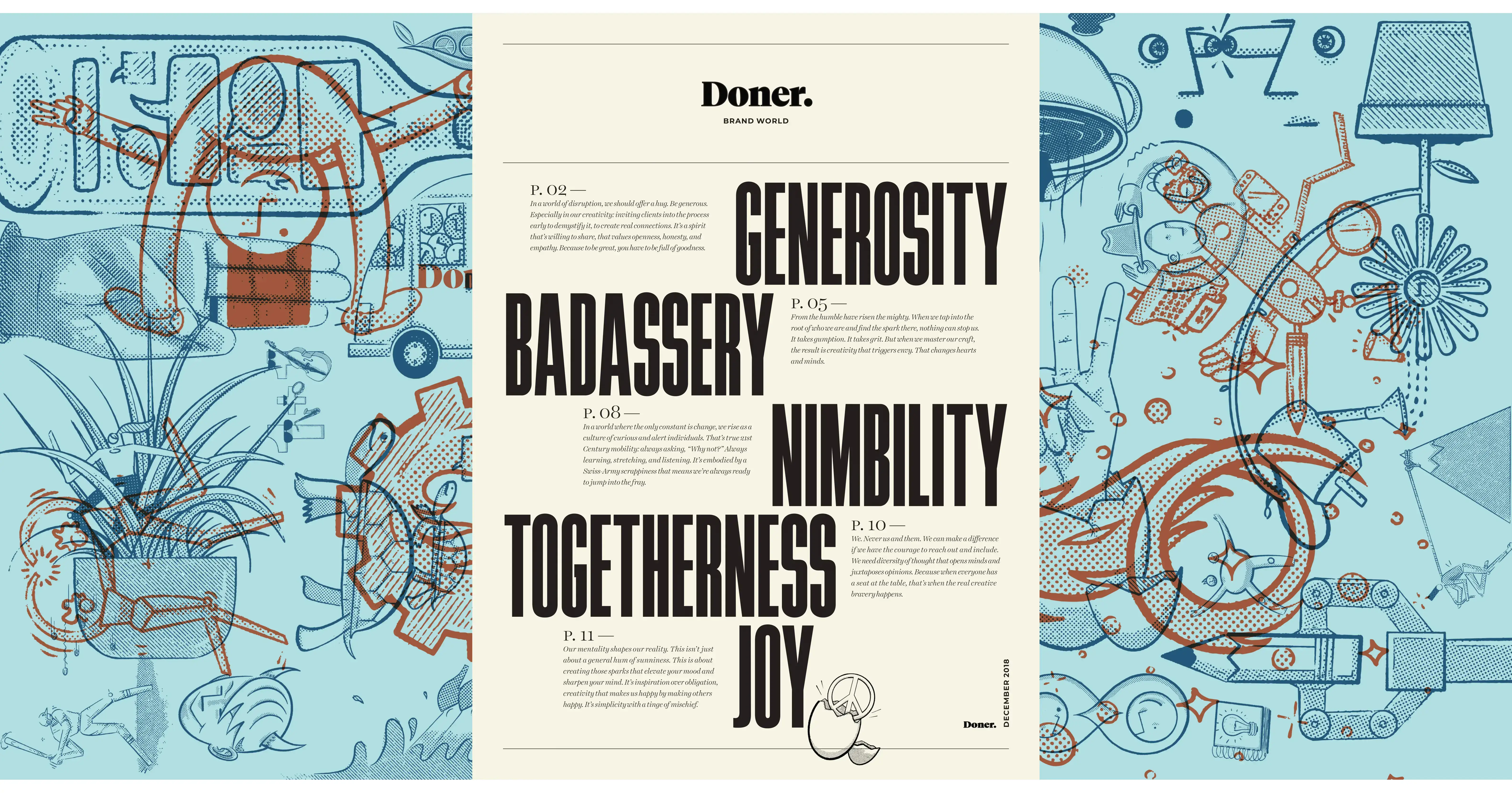 DONER, A NEAR CENTURY-OLD STALWART IN A RESURGENT CITY, recast itself into a modern brand capable of attracting other brands needing similar transformation. Undergoing this change was a “physician heal thyself” moment in which the brand foundation processes — a 4C’s investigation, brand architecture, BrandWorld — also became Master Classes for Doner employees.