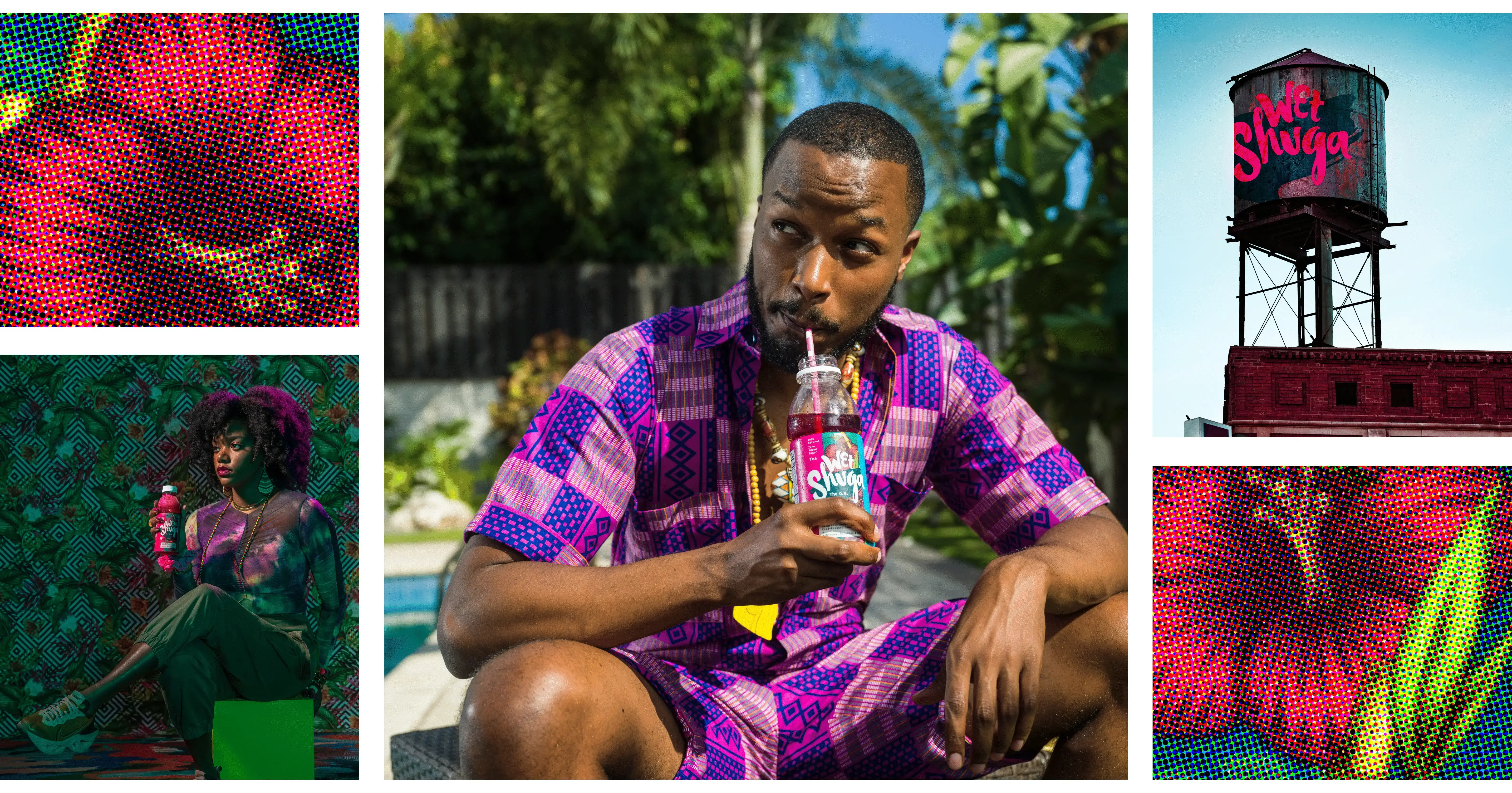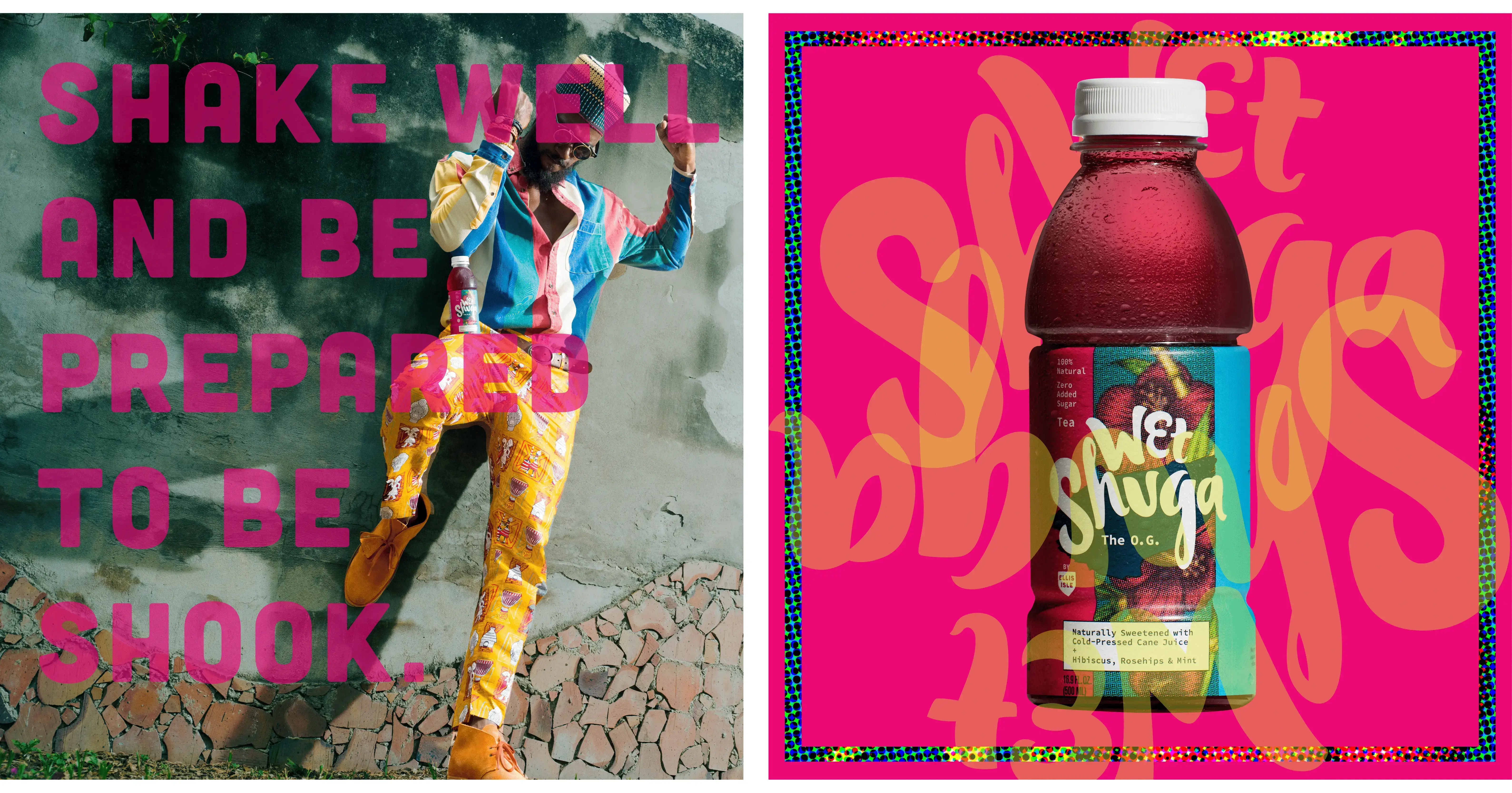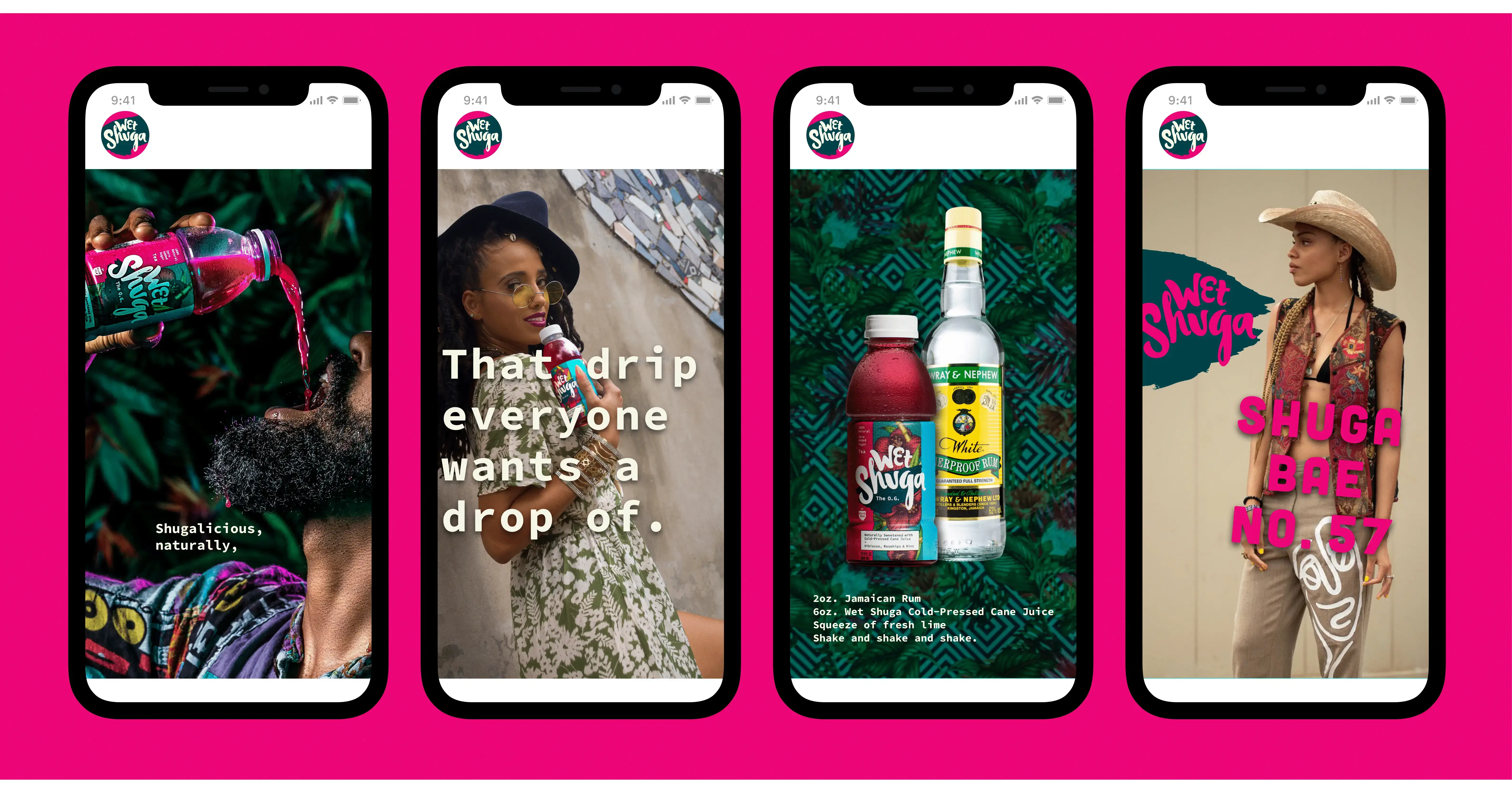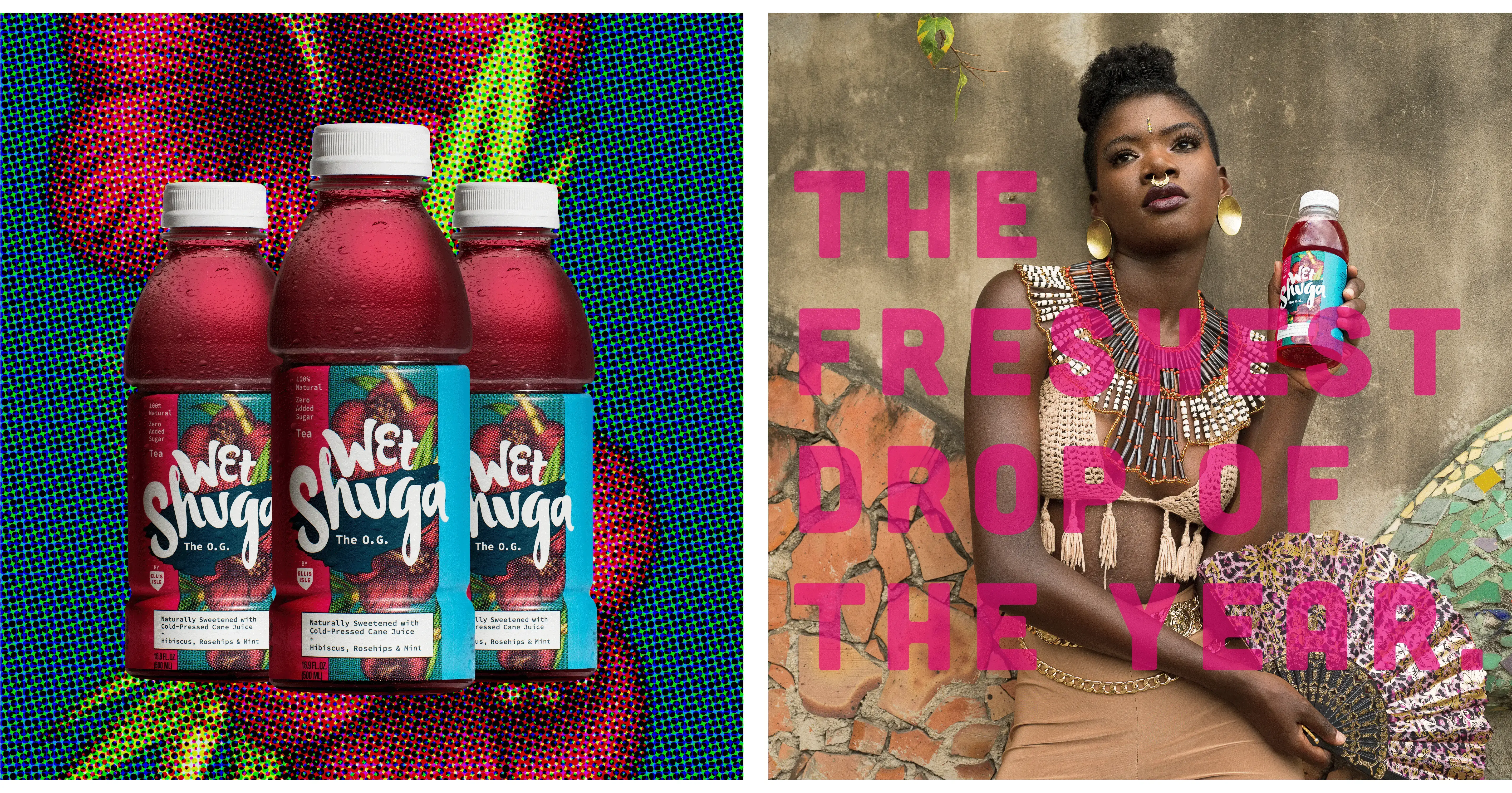 pierced with bright lime green typography and its ingredients bursting from behind. Wet Shuga appeared as the irreverent young-